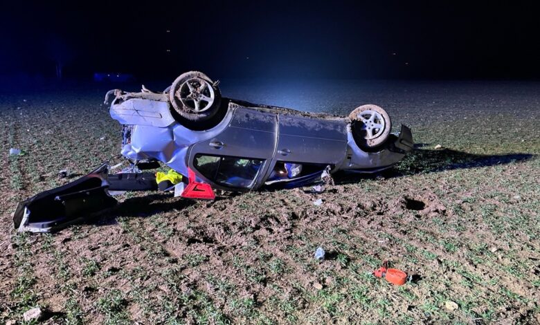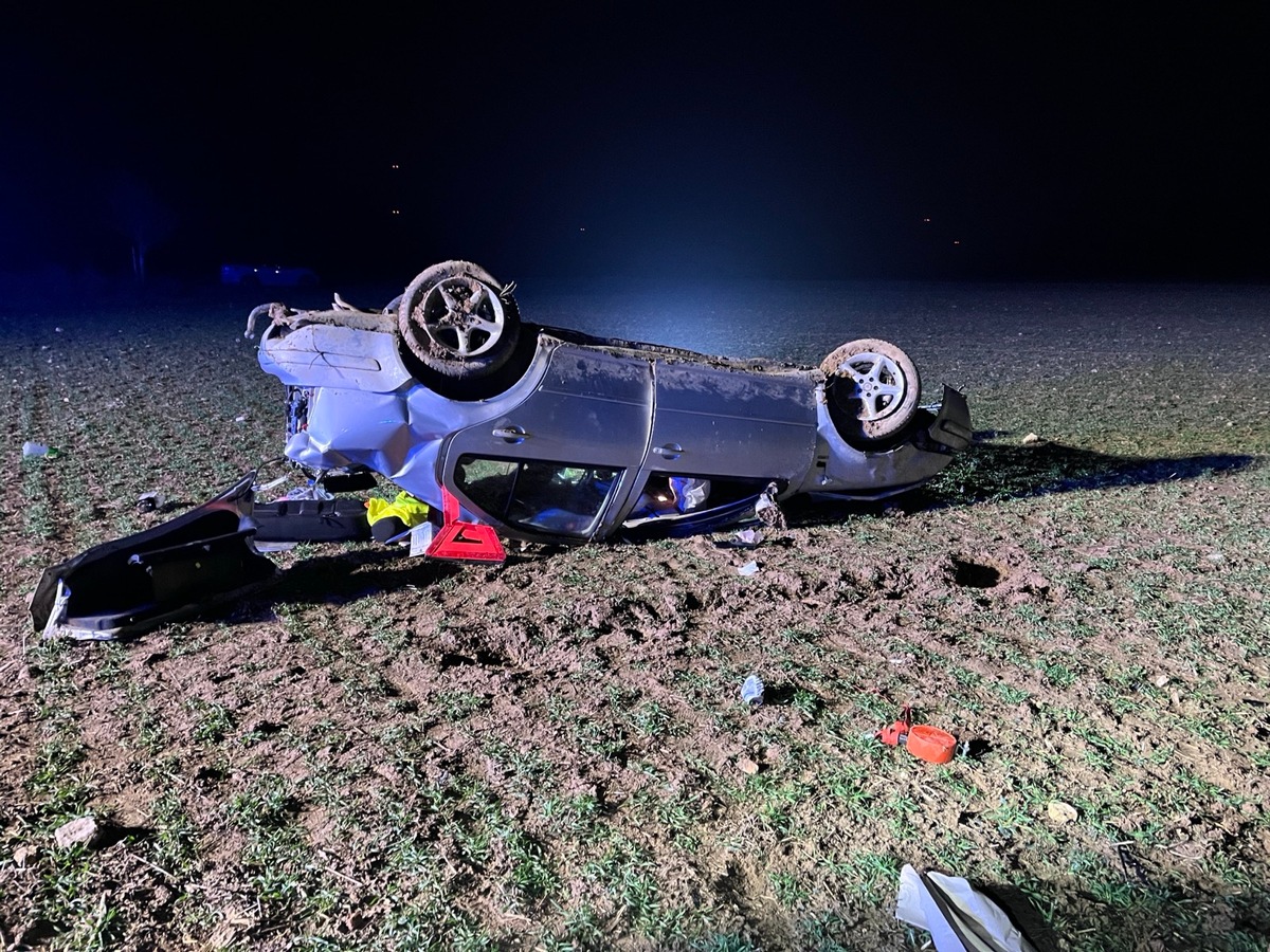 Damit war die Reise jedoch noch nicht ganz vorbei: Der Pkw überschlug sich mehrfach und kam erst rund 120 Meter weiter auf einem Feld zum Stillstand – kopfüber. Trotz des eindrucksvollen Unfallbildes hatten die Insassen Glück im Unglück: Alle drei erlitten lediglich leichte Verletzungen.