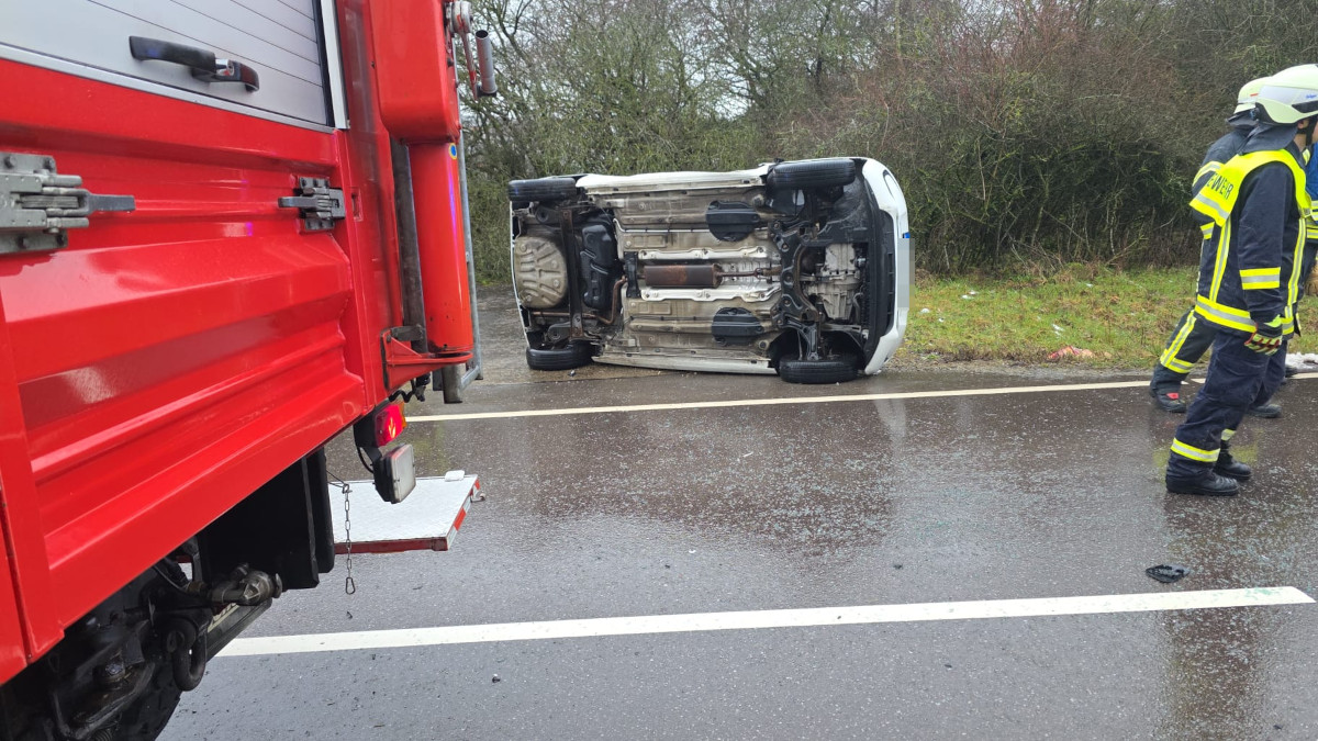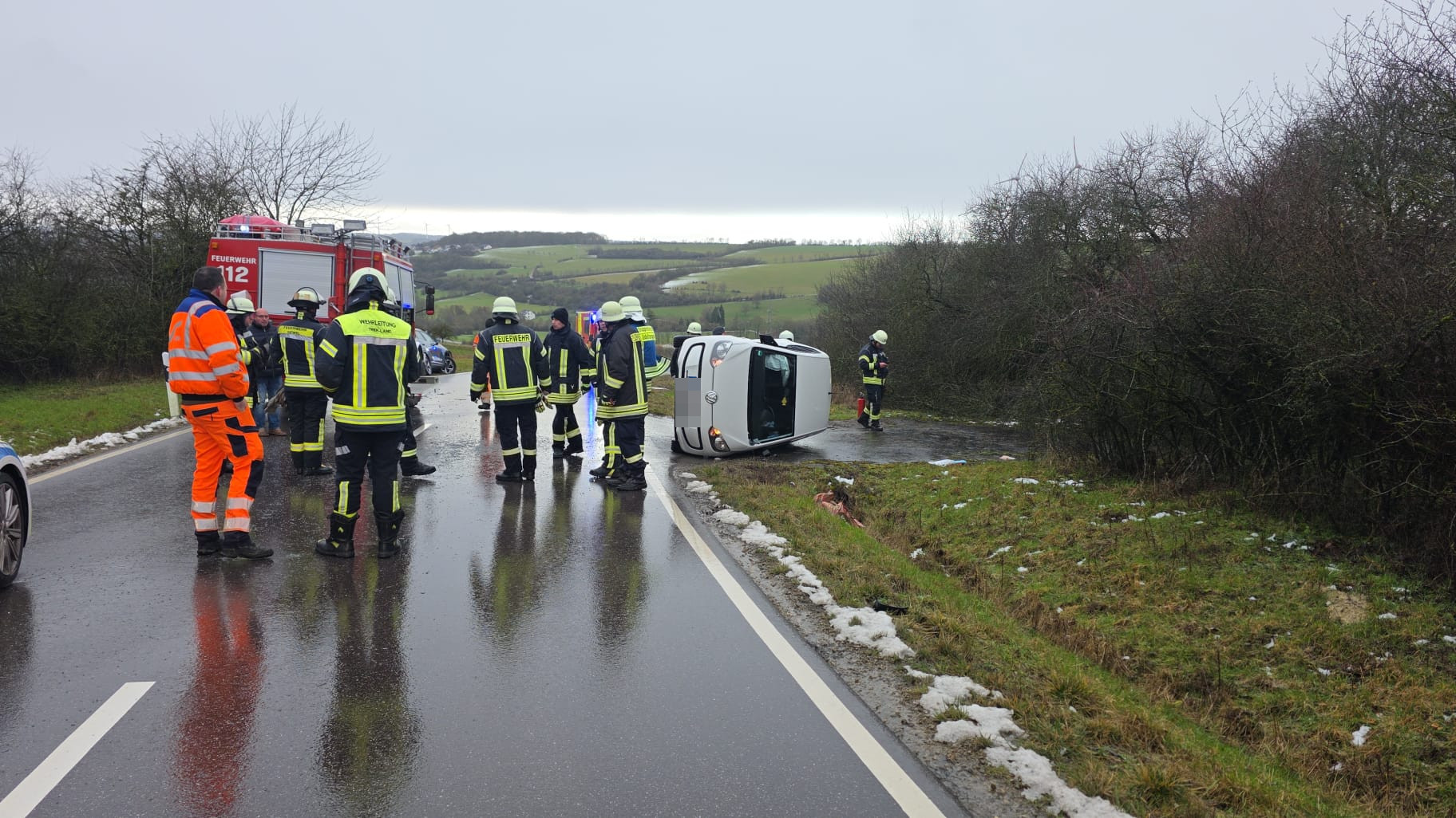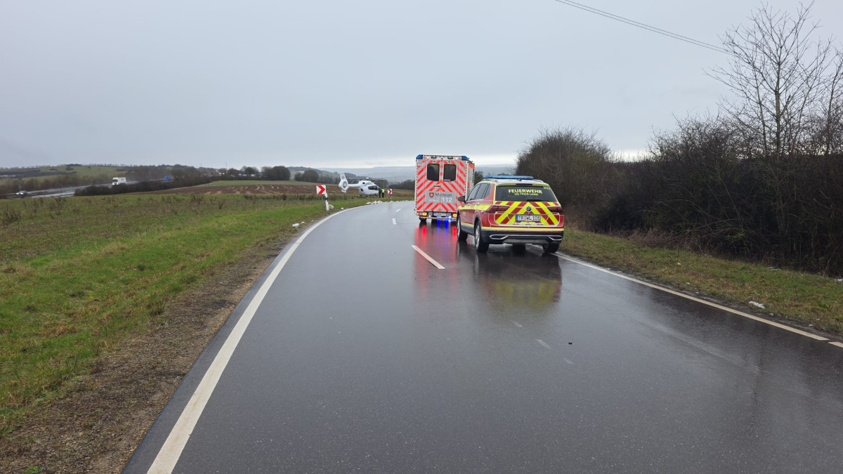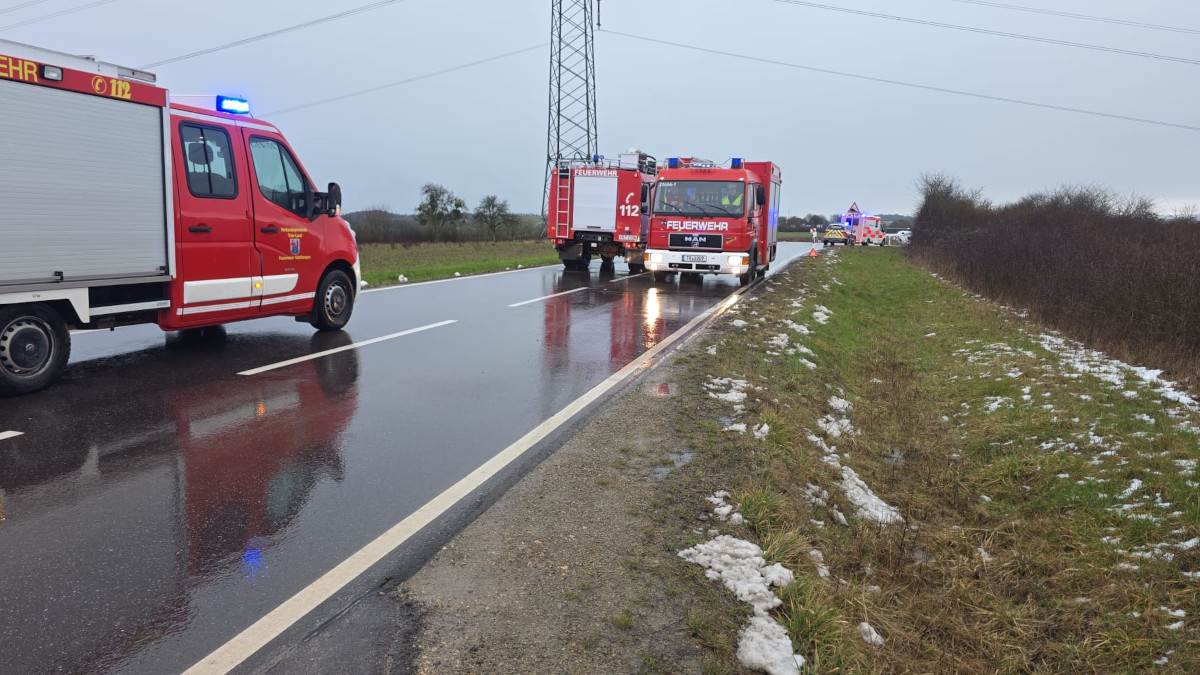 Nach ersten Erkenntnissen der Einsatzkräfte blieb eines der beteiligten Fahrzeuge seitlich am Straßenrand liegen, während der zweite Wagen in den angrenzenden Straßengraben geschleudert wurde. Da zunächst von einer eingeklemmten Person ausgegangen wurde, rückte neben dem Rettungsdienst auch die Feuerwehr mit mehreren Einheiten an. Vor Ort stellte sich jedoch heraus, dass alle drei Insassen ohne den Einsatz schweren Geräts aus den Fahrzeugen befreit werden konnten.